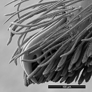 Scopula hair from a tarsus of Scotophaeus blackwalli, at high magnification
